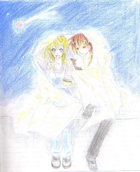 二人で水筒に入れた温かいお茶を飲みながら冬の星空観察…という設定。
